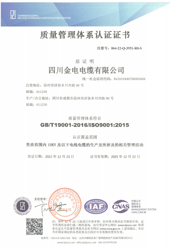 四川金電電纜有限公司位于“享譽(yù)中外”的天府之國成都市,公司始建于1998年,現(xiàn)擁有固定資產(chǎn)6000萬元,廠區(qū)占地面積17000平方米,建筑面積15000平方米,現(xiàn)有職工80人,科學(xué)技術(shù)人員15人,銷售人員12人,具有現(xiàn)代企業(yè)管理和專業(yè)技術(shù)才能。 公司擁有國內(nèi)一流的線纜生產(chǎn)設(shè)備和質(zhì)量檢測設(shè)備;建有完整、快捷的銷售和服務(wù)網(wǎng)絡(luò),初步形成了“科技化生產(chǎn)、規(guī)范化管理、優(yōu)質(zhì)化服務(wù)、集約化經(jīng)營”的科學(xué)發(fā)展格局。產(chǎn)品質(zhì)量 企業(yè)以完善的質(zhì)量管理通過了ISO9001:2015國際質(zhì)量體系認(rèn)證、ISO14001:2015國際環(huán)境質(zhì)量體系認(rèn)證和ISO45001:2018職業(yè)健康安全管理體系認(rèn)證。全部產(chǎn)品均獲得國家工業(yè)部質(zhì)量技術(shù)監(jiān)督局頒發(fā)的生產(chǎn)許可證及國家強(qiáng)制性CCC認(rèn)證。銷售網(wǎng)絡(luò) 公司建立完善的市場營銷體系,實(shí)施“品牌營銷和網(wǎng)絡(luò)營銷”相結(jié)合的發(fā)展戰(zhàn)略,金電產(chǎn)品暢銷全國各地及遠(yuǎn)銷東南亞等國家和地區(qū)。深受廣大客戶的信賴和支持,并為眾多重點(diǎn)項(xiàng)目所選用。 公司大力推進(jìn)技術(shù)創(chuàng)新,資本運(yùn)營,國際化拓展三大戰(zhàn)略,全面推動(dòng)金電由傳統(tǒng)企業(yè)向高新技術(shù)產(chǎn)業(yè)轉(zhuǎn)型,全力打造國際型企業(yè),進(jìn)行全球化經(jīng)營。 ...